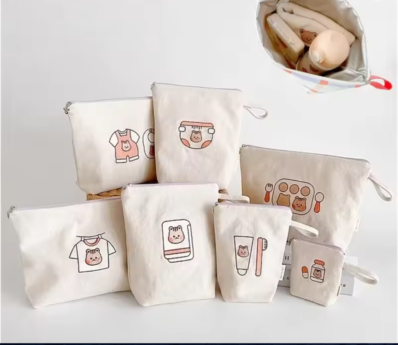 Made from durable, waterproof fabric, they protect your baby’s items from spills, leaks, and dirt. The lightweight design and zip closure make them practical for everyday use, while the cute bear print adds a touch of charm.