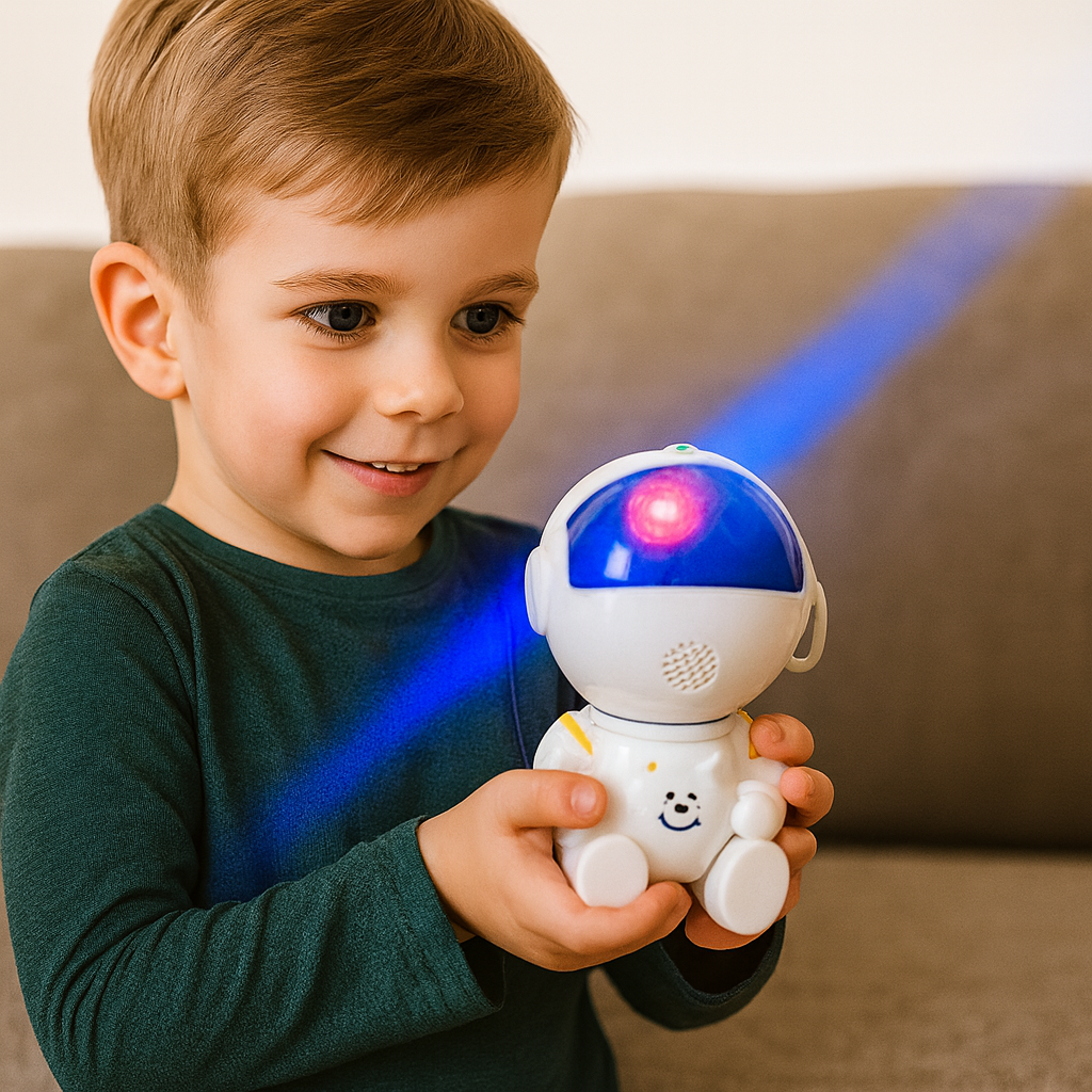 Unlike harsh lights or noisy gadgets, the Astronaut Projector uses soft LED lighting and smooth ambient glow — ideal to avoid overstimulation at night. Experts reviewing star projectors note that a softly glowing starry ceiling can support a relaxed night atmosphere and help children fall asleep more easily.