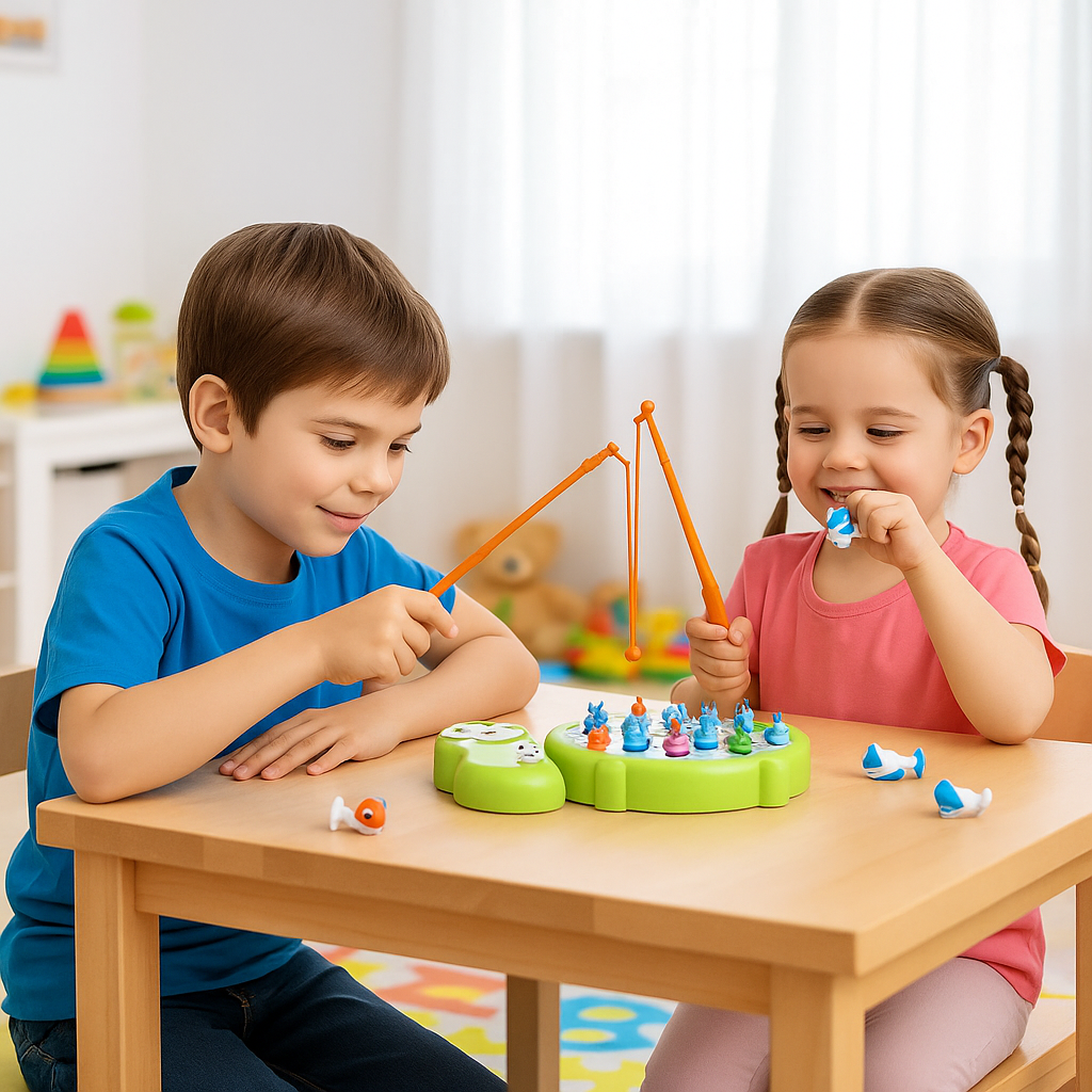 -Hand-eye coordination & fine motor control: guiding the rod and catching the pieces sharpens these abilities.