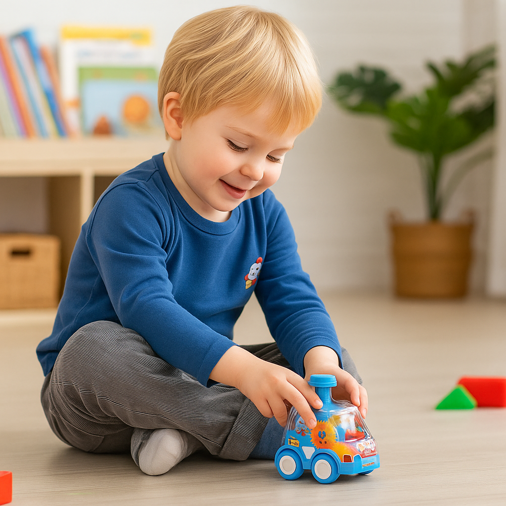 Designed with toddlers in mind, the Gear-Spin Transparent Push Car uses sturdy plastic, sleek wheels, and safe rounded edges. It’s lightweight enough for little hands to push with ease, yet durable enough to withstand lively play sessions. Indoor or outdoor, it’s ready for action.