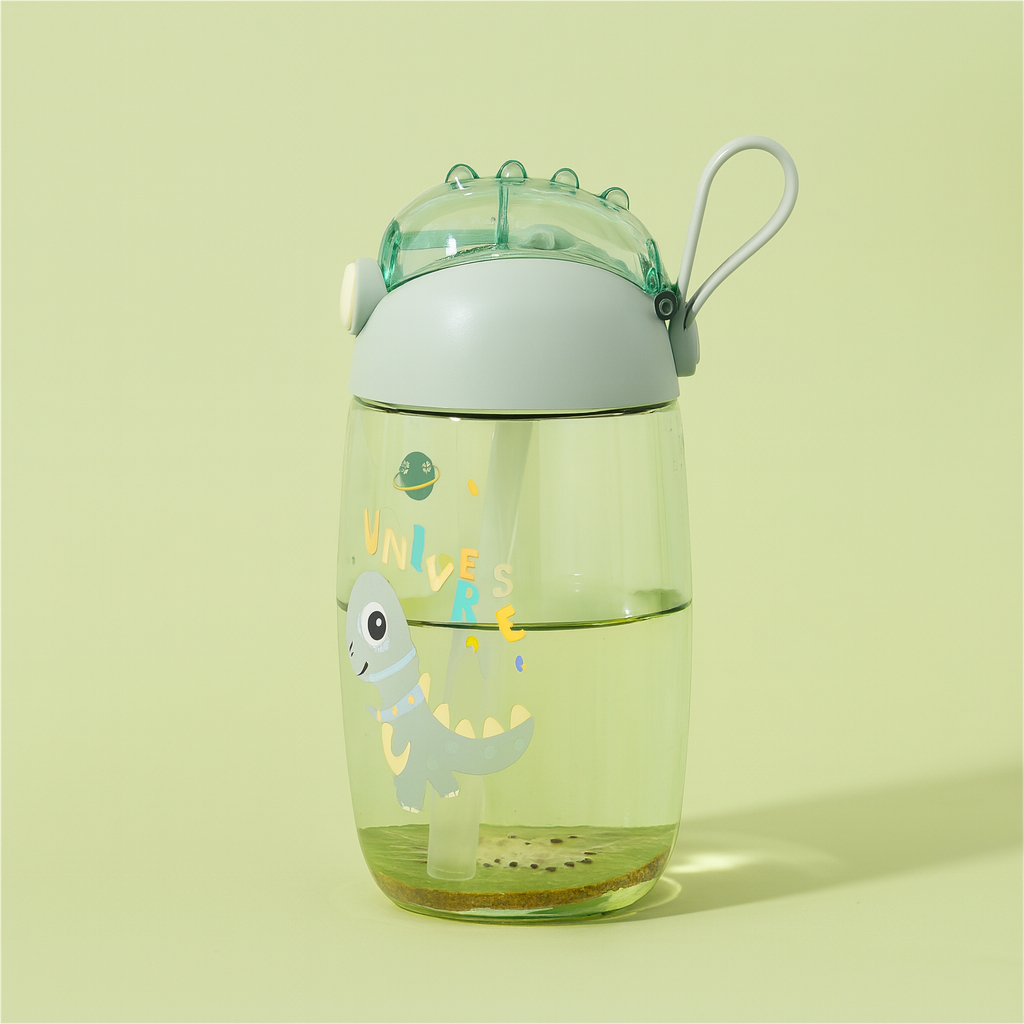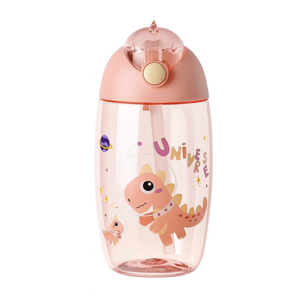 This adorable water bottle features a playful cartoon dinosaur design that children love, making them more excited about drinking water. The bottle comes with a built-in straw and flip-top lid, so kids can drink comfortably and spill-free.