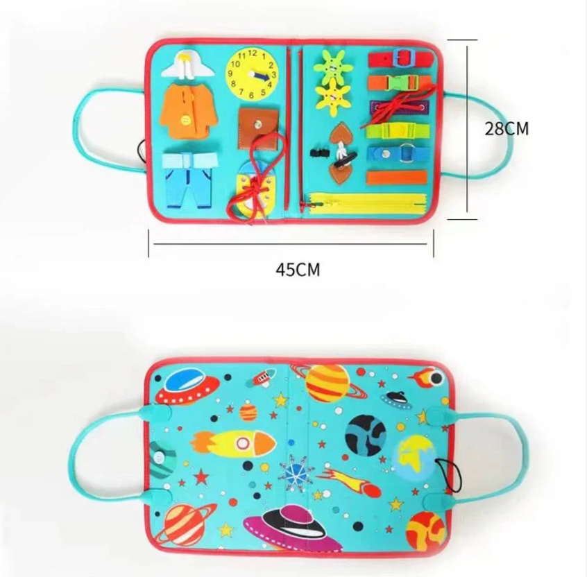The tactile design encourages children to explore textures and patterns, helping to refine their sense of touch and build important neural connections. As they zip, button, tie, and snap, they’re not just playing – they’re mastering essential everyday skills that foster independence and confidence.