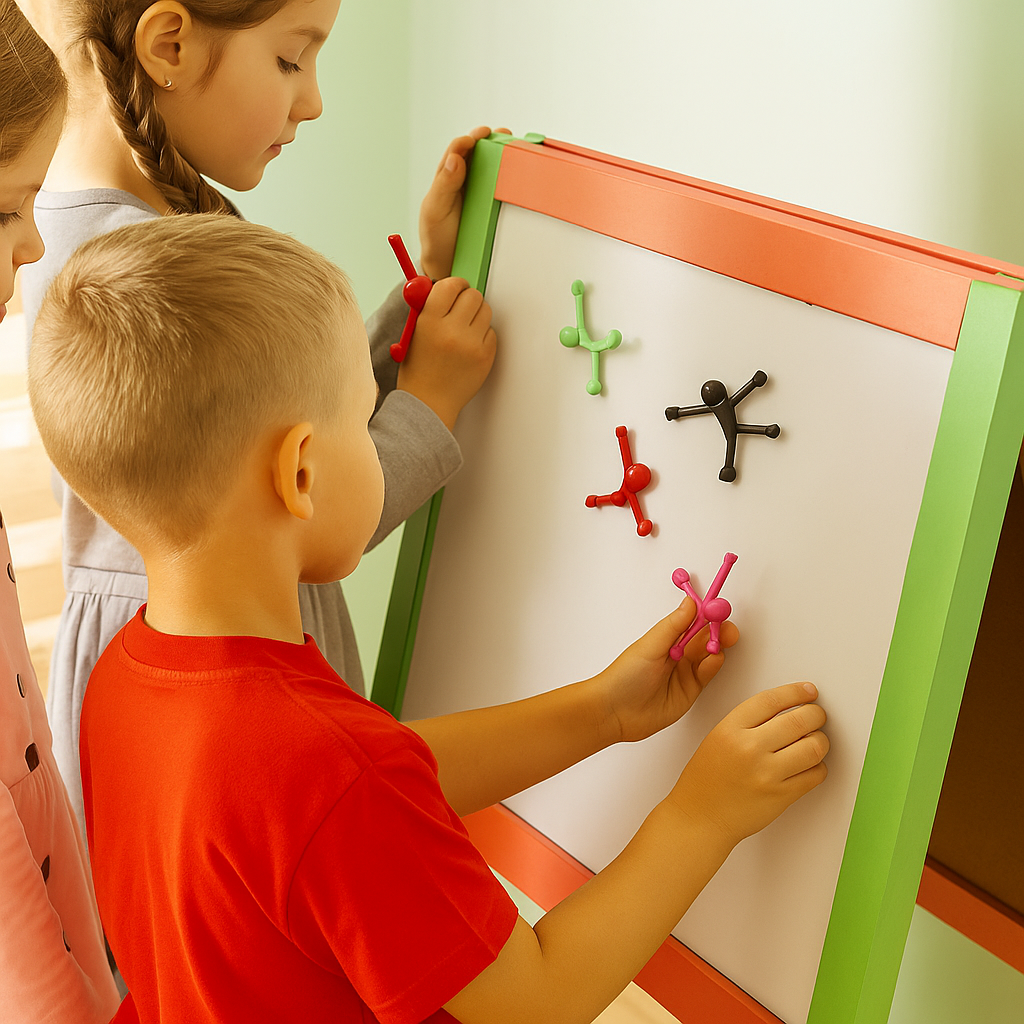 The MagnaClimb Figures Set turns metal surfaces into a playful adventure zone. Children place the colourful climbing characters on a whiteboard, fridge or magnetic board and arrange them into fun positions, patterns or little stories. With their flexible limbs and strong magnets, the figures “hold on” wherever kids decide to put them — encouraging curiosity, creativity and hands-on exploration.