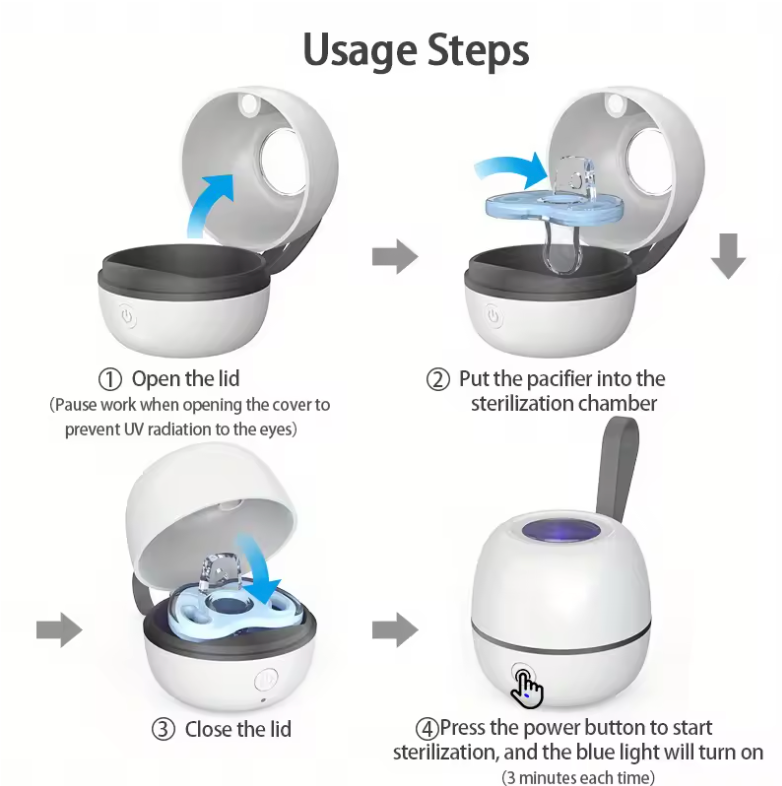 Keep your baby safe and stress-free with the Portable Pacifier Steriliser Box – a must-have for modern parents!