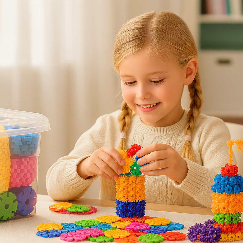 Handling less-usual shapes requires care and precision. As children pick up each flake, align it, balance it or slot it into place, they hone fine motor skills, control and coordination. This tactile, hands-on building improves dexterity — useful not only for play, but for many everyday tasks growing up.