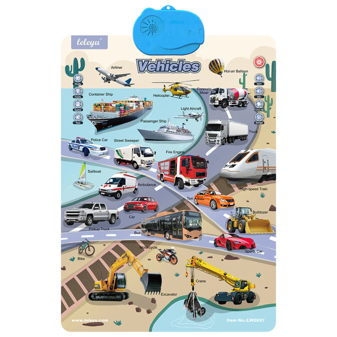 This talking learning board supports vocabulary building, pronunciation practice and listening comprehension through clear audio prompts and kid-friendly design. It invites children to explore words, sounds and sentences at their own pace, turning language learning into a fun, self-guided experience.