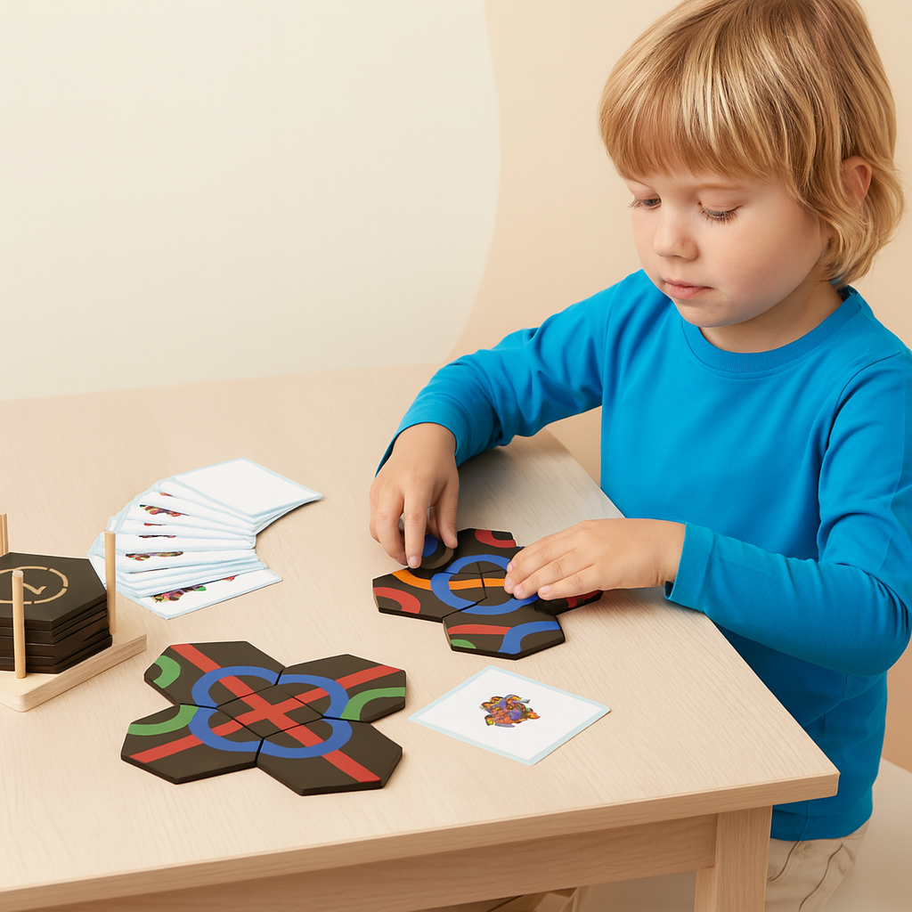 Placing tiles precisely, adjusting pieces and completing shapes helps refine fine motor control and hand–eye coordination.